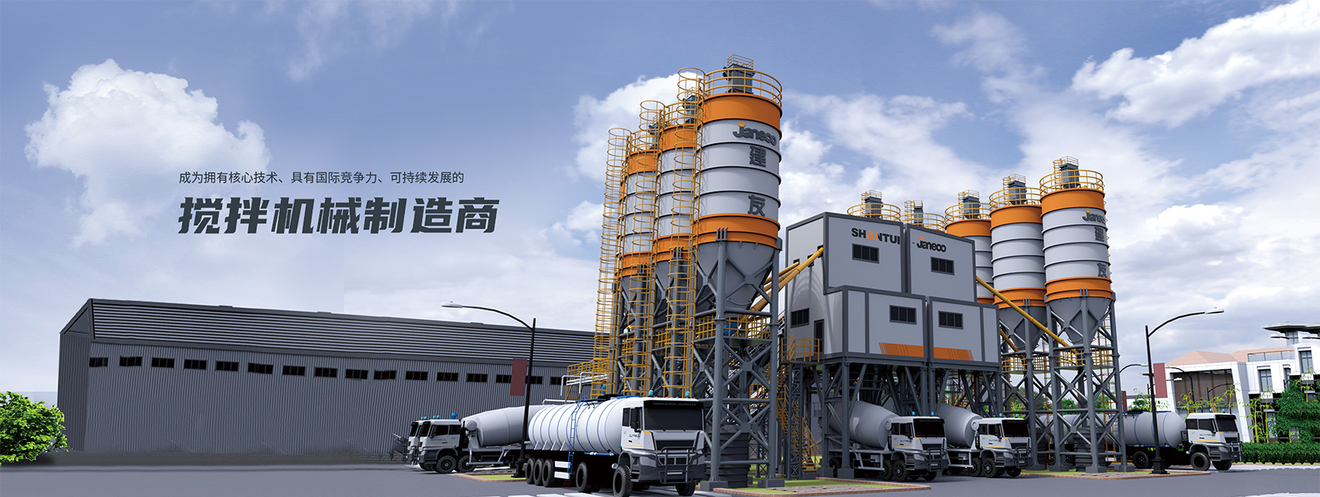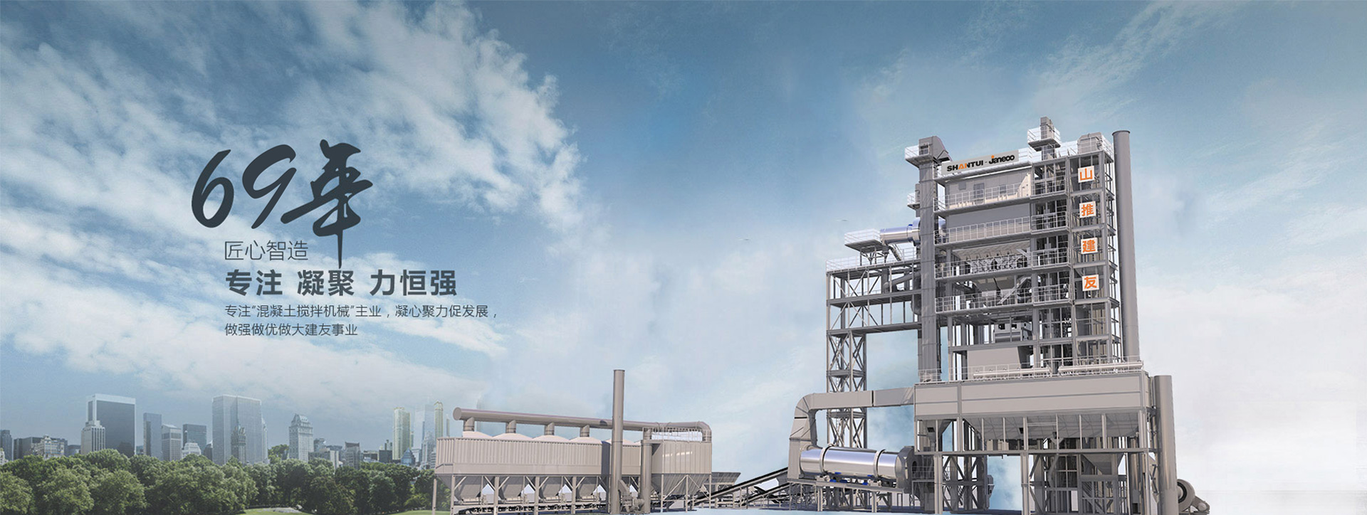 山推建友機械股份有限公司主營混凝土攪拌站、瀝青攪拌站、穩(wěn)定土拌合站、干混砂漿站、制砂站、破碎線、混凝土攪拌運輸車、圾處理設(shè)備及拖泵、砂石分離機等各類攪拌機械。